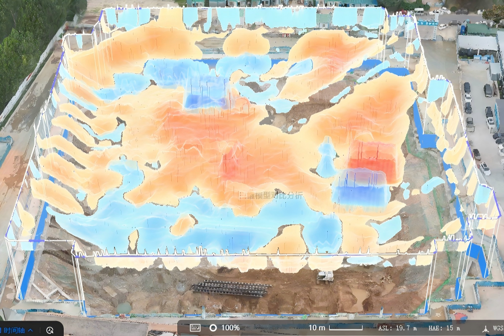 通過空間模型與時(shí)間軸結(jié)合,系統(tǒng)對(duì)多時(shí)間點(diǎn)二維、三維及斷面模型數(shù)據(jù)自動(dòng)比對(duì),直觀呈現(xiàn)土方開挖變化與工程進(jìn)度,為進(jìn)度計(jì)劃制定和優(yōu)化提供支撐。同時(shí),AI圖像比對(duì)技術(shù)可自動(dòng)識(shí)別不同時(shí)間點(diǎn)模型間的差異區(qū)域,實(shí)現(xiàn)施工區(qū)域動(dòng)態(tài)變化精準(zhǔn)監(jiān)控。